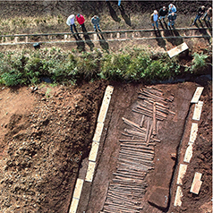 Der über 4 km lange Bohlenweg Pr VI (56-43 v. Chr.).